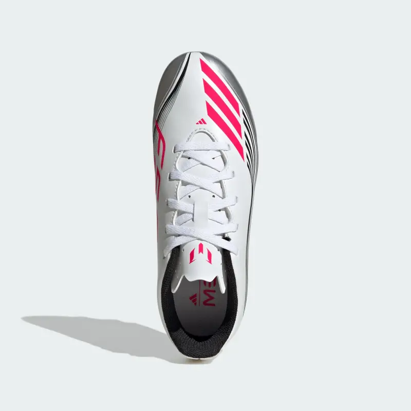 Entwickelt für Geschwindigkeit, abgestimmt auf Lionel Messi. Diese adidas Club Fußballschuhe für Kinder und Jugendliche sind Teil einer Kollektion, die speziell auf die Bedürfnisse des GOAT (Greatest of All Time) auf dem Platz zugeschnitten ist. Das stützende Synthetik-Obermaterial verfügt über eine leichte Zunge, um Gewicht und Ablenkung zu minimieren. Die vielseitige Außensohle ermöglicht dir, auf festem Untergrund und Kunstrasen dein ganzes Können zu zeigen.