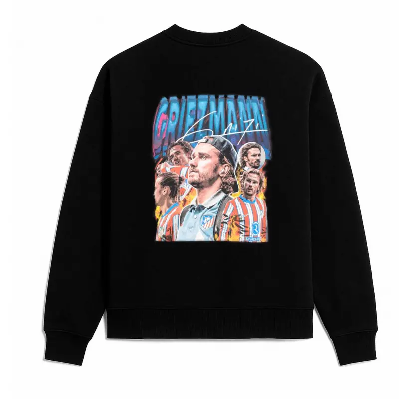 Tragen Sie die Essenz von Antoine Griezmann in Ihrem Körper mit diesem Sweatshirt, das den Stürmer von Atlético Madrid abbildet.