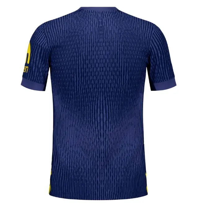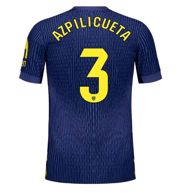 Diese Spieleredition des zweiten Herren-Trikots von Atlético de Madrid für die Saison 2025/26 kombiniert ein elegantes Marineblau mit Blitzgrafiken und leuchtend gelben Details.