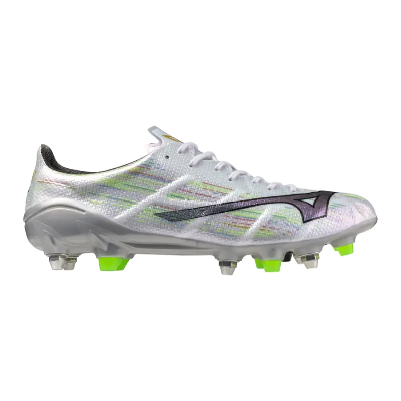 Voll und ganz auf Geschwindigkeit ausgelegt. Der MIZUNO α II hilft Spielern, durch seine bequemere Passform und sein geringeres Gewicht maximale Geschwindigkeit zu erreichen. 1) Obermaterial Alle Materialentscheidungen wurden von Grund auf neu überdacht, um eine bequemere Passform zu erreichen. Das Obermaterial wurde ebenfalls neu gestaltet, um die Passform zu verbessern. 2) Sohle Die MIX-Sohle ist auf matschigen Spielfeldern besonders effektiv 3) Einlegesohle Der Griff des ZEROGLIDE α MESH reduziert seitliche Verschiebungen und unterstützt präzise Bewegungen.