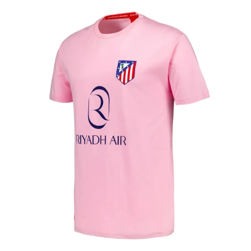 Das pinkfarbene Riyadh Air T-Shirt ist ein lebendiges und modernes Stück, perfekt für Fans von Atlético de Madrid, die mit Stil auffallen möchten.