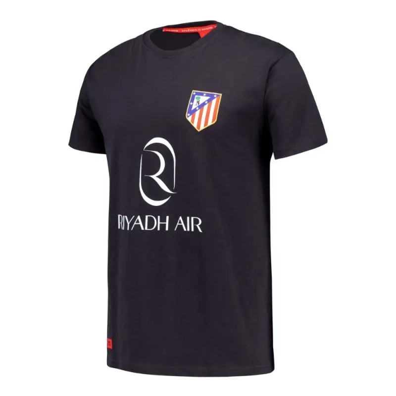 Tragen Sie stolz das Wappen von Atlético de Madrid und unterstützen Sie Atleti auf einzigartige Weise mit diesem schwarzen Riyadh Air T-Shirt.