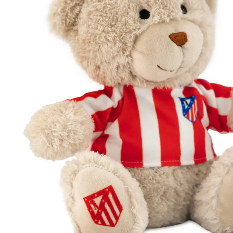 Dieser weiche Teddy trägt ein T-Shirt mit dem offiziellen Wappen von Atlético de Madrid, das sorgfältig gestickt ist und den Stolz und die Leidenschaft des Vereins auf süße und originelle Weise widerspiegelt.
